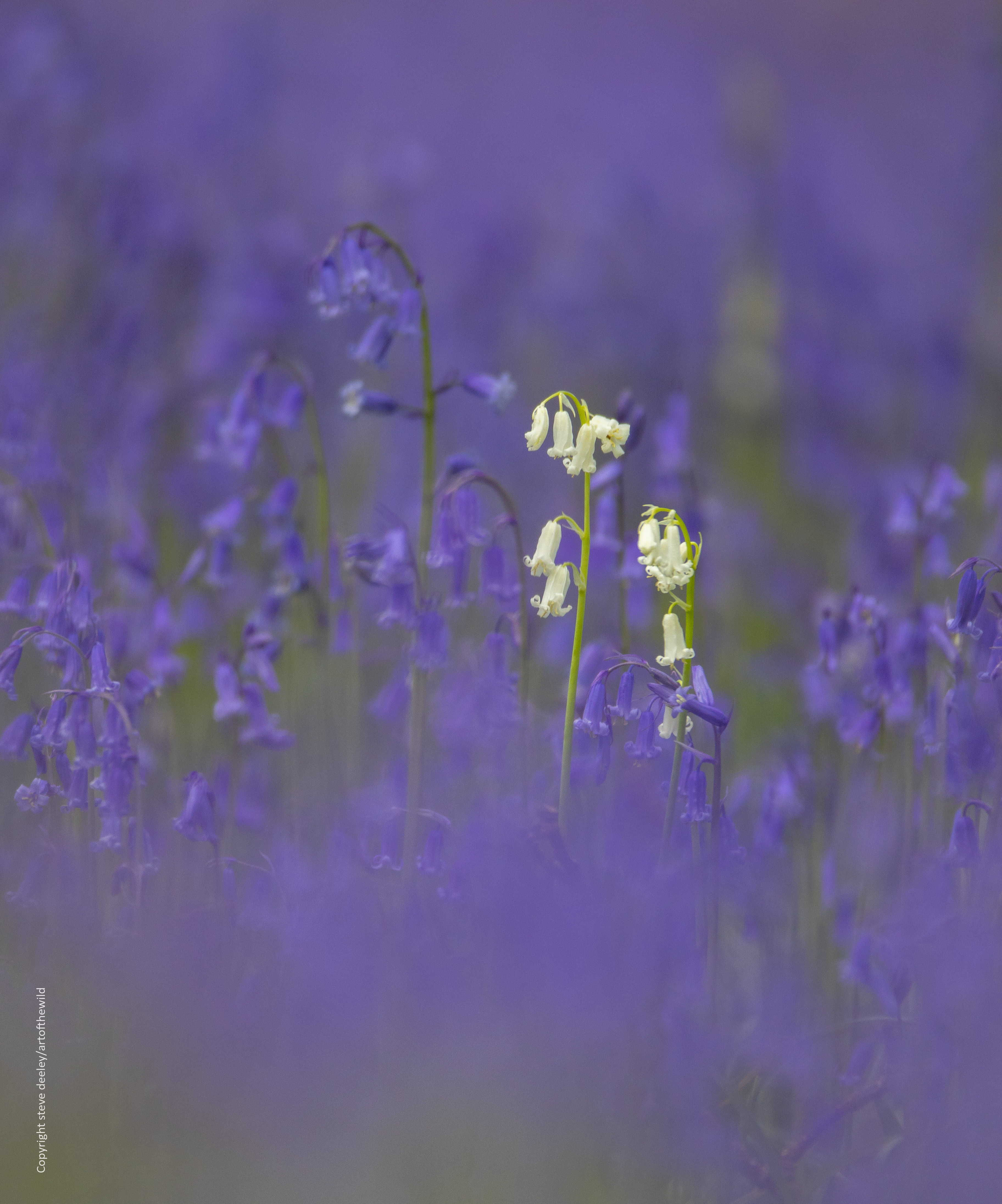 I was in a local bluebell wood the other day, trying to find a new way of showing the beauty of these plants. I failed as usual, simply because they are so stunningly beautiful that it’s hard to find an image that does them justice. I particularly like trying to photograph the occasional Whitebell that crops in the midst of the sea of blue – I suppose because they feel a bit like the plucky underdog. The job was made harder by the inclement weather, with dark clouds regularly scudding in front of the sun.